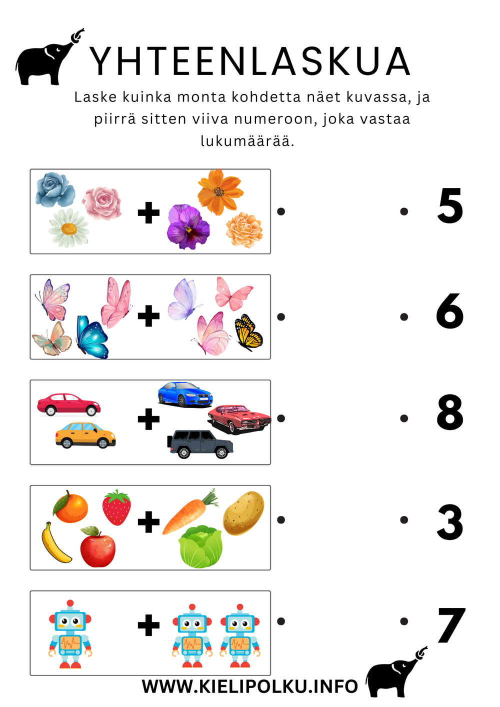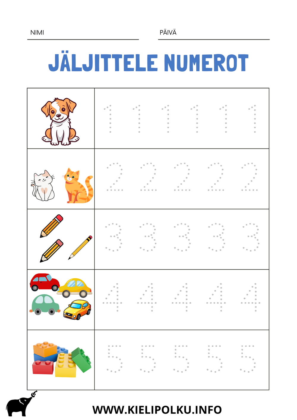 tehtäviä joissa voi tutustua numeroihin ja harjoitella