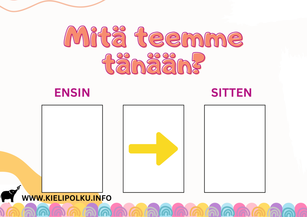 Tulosta tästä kätevä dokumentti, "ensin ja sitten". Sen käyttö auttaa lasta ennakoimaan siirtymät.