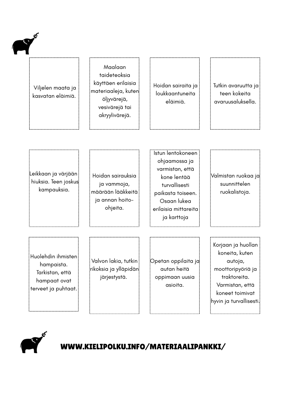 Seuraavassa osiossa ovat samat dokumentit pdf muodossa, ohessa on myös ideoita materiaalien käyttömahdollisuuksista.