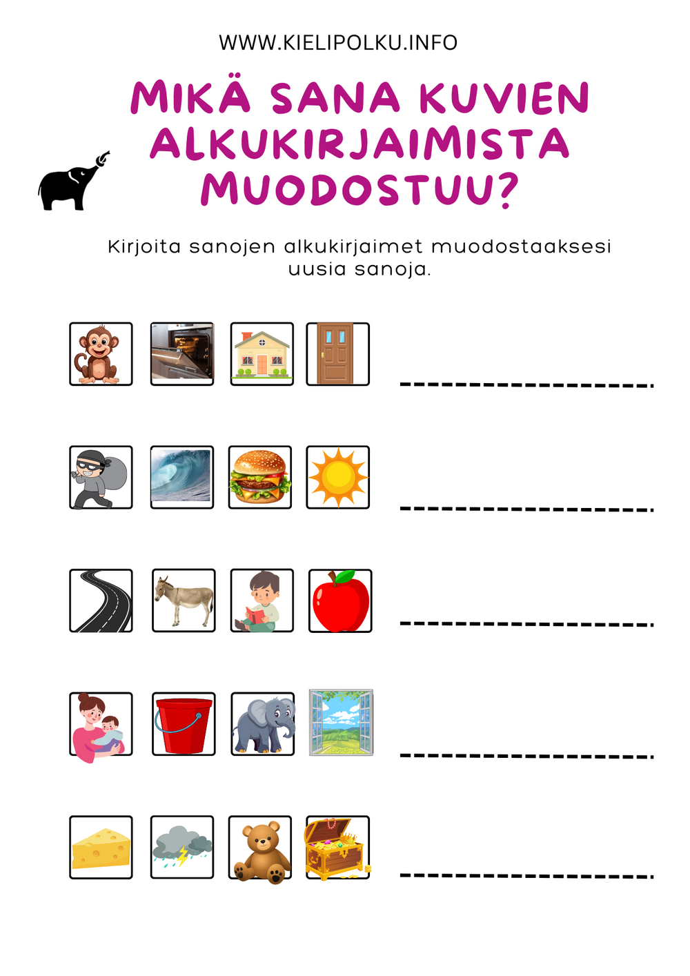 Tässä tehtävässä muodostetaan sanojen alkukirjaimista uusi sana .