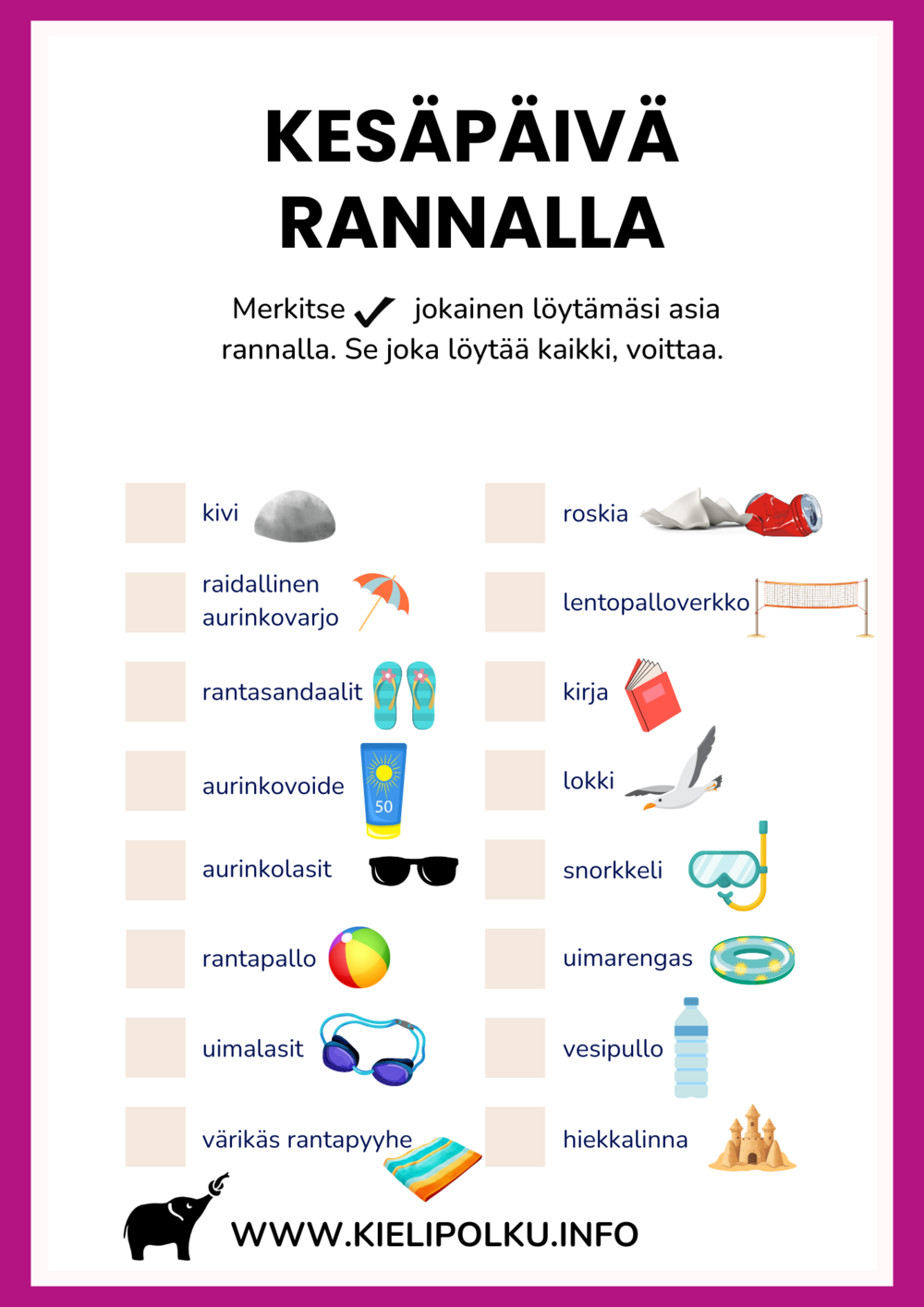Kesäpäivää varten tekemistä rannalle. Löydä kaikki kuvat.