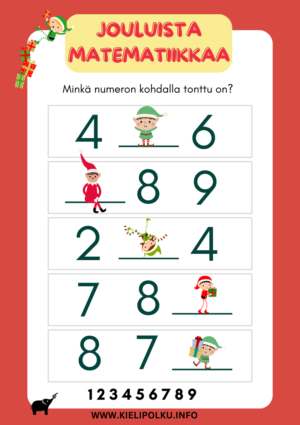Klikkaa tästä niin sinulle avautuu lisää jouluisia tehtäviä.