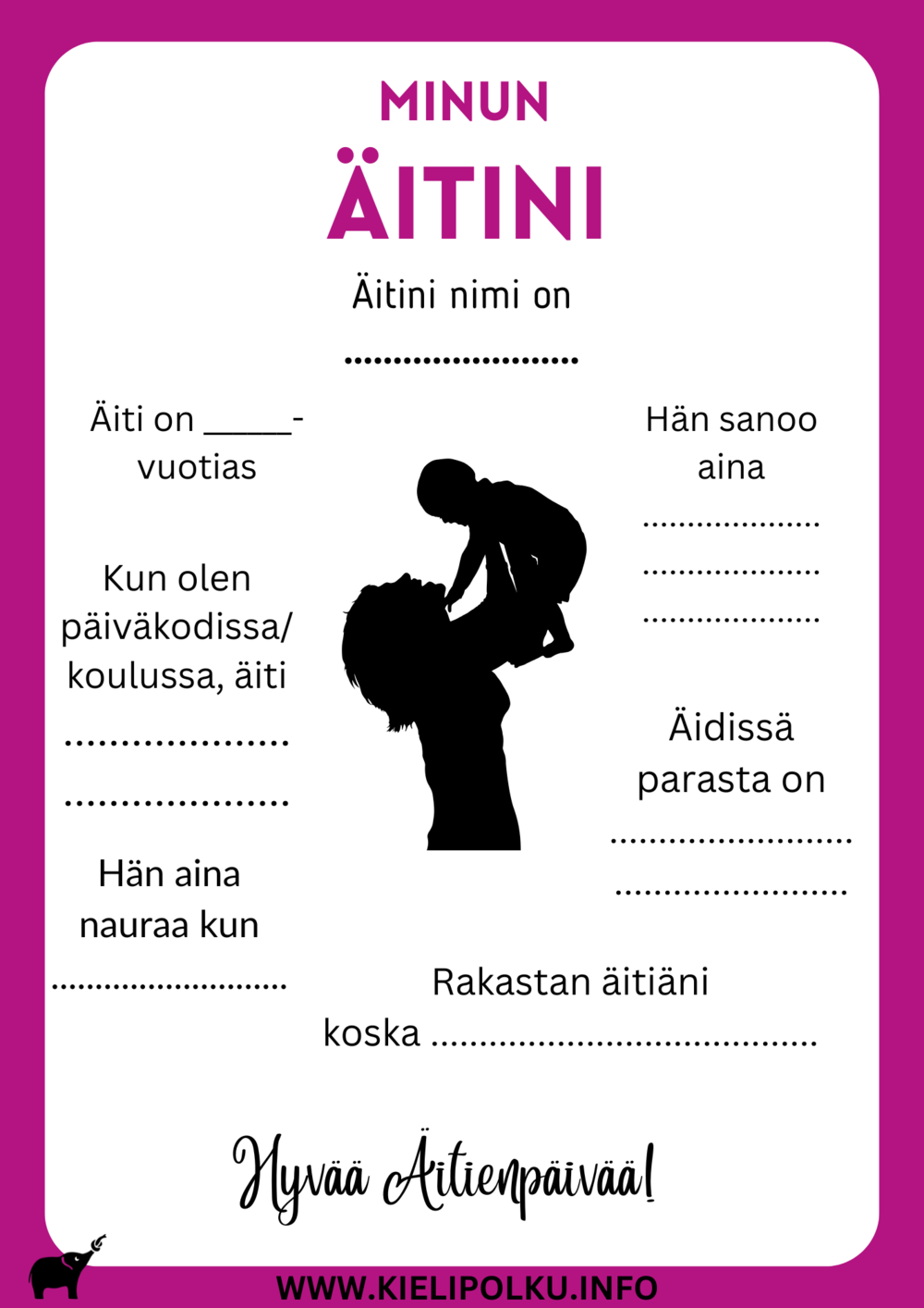 Tulosta tämä tiedosto, ja täytä tämä lapsen kanssa. Äidille iloa äitienpäiväksi