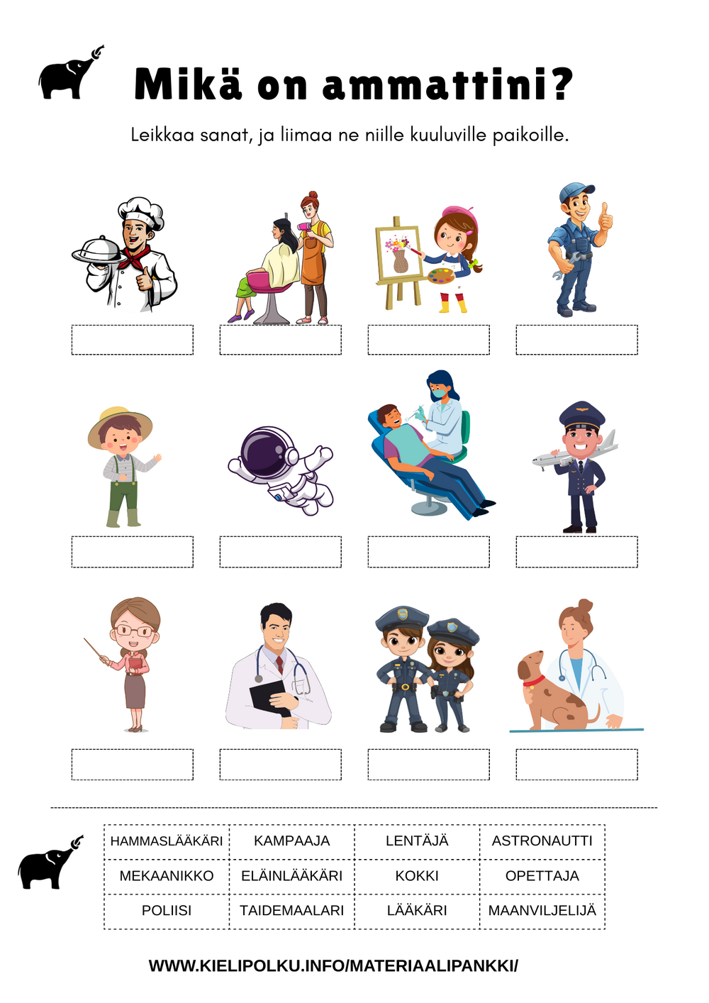 Näitä tehtäviä voi tehdä tehtäviä lapsen kanssa. Materiaalia löytyy seuraavista asioista: