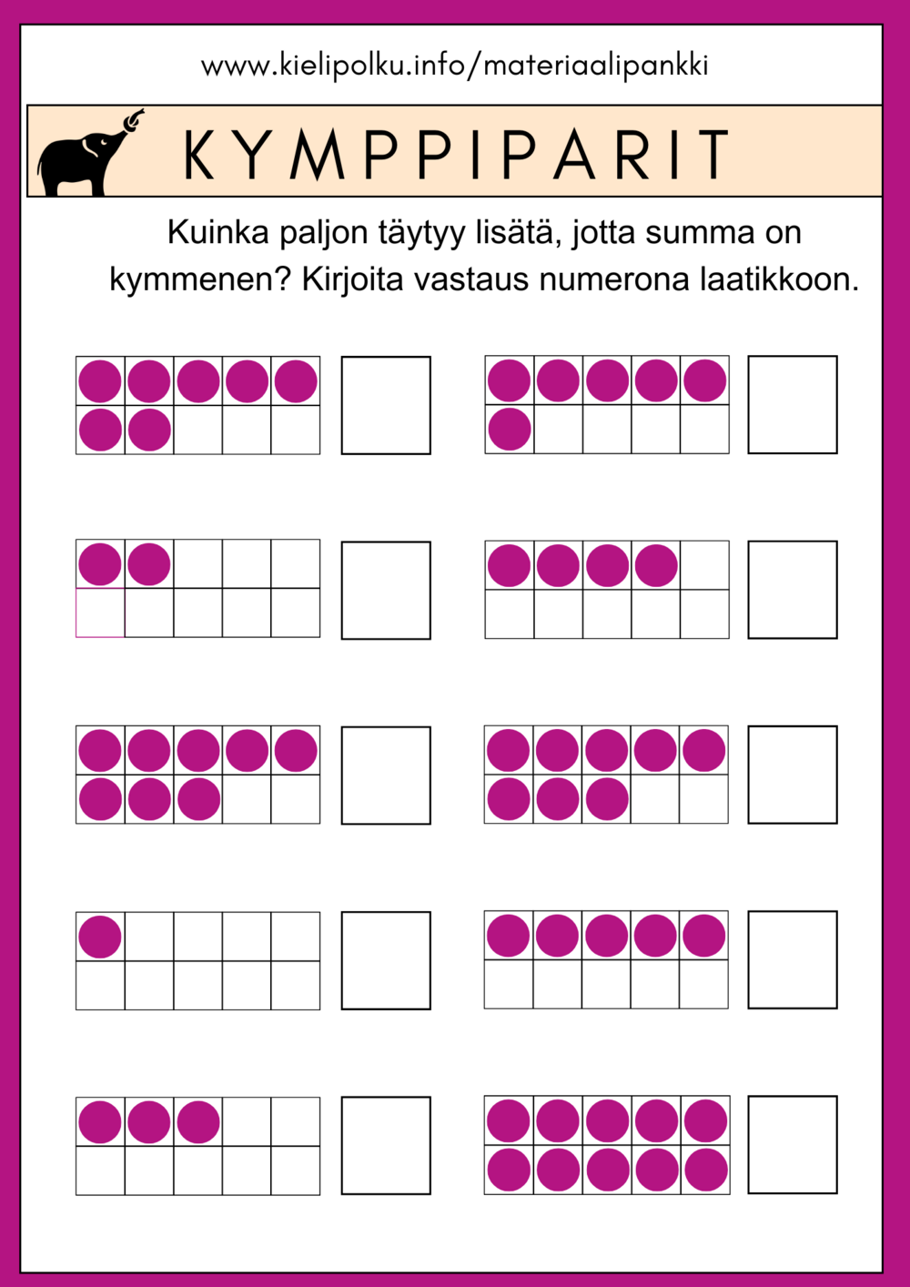 tehtäviä joissa voi tutustua numeroihin ja harjoitella