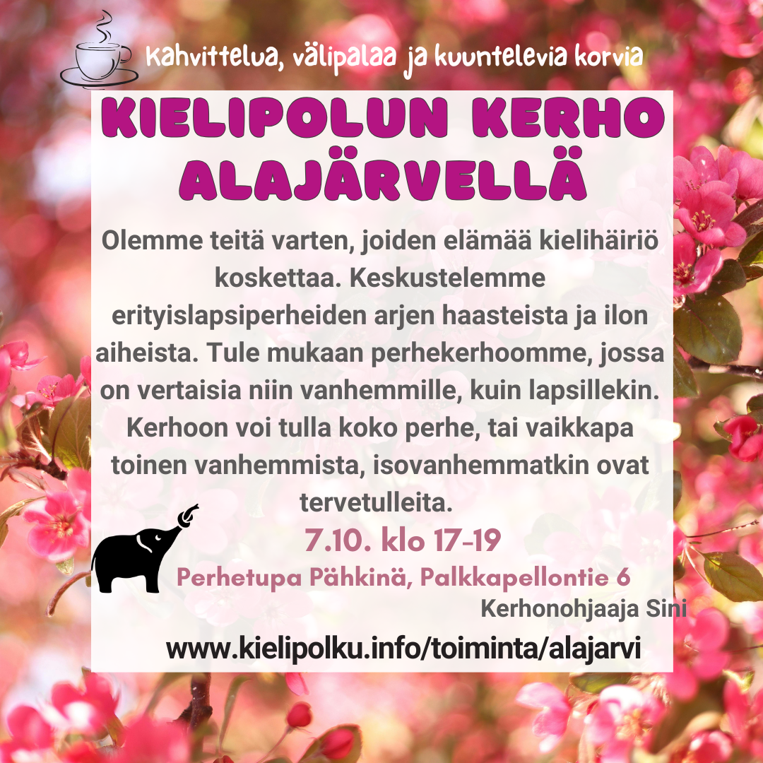 Kerhotoiminta on maksutonta perheille. Mukaan voi tulla koko perhe, tai vaikkapa toinen vanhemmista, ja isovanhempikin voi halutessaan tulla kerhoon mukaan. Mukavaa keskustelua hyvässä, luottamuksellisessa ilmapiirissä kehityksellisestä kielihäiriöstä, siihen liittyvistä asioista, arjen iloista ja haasteita.