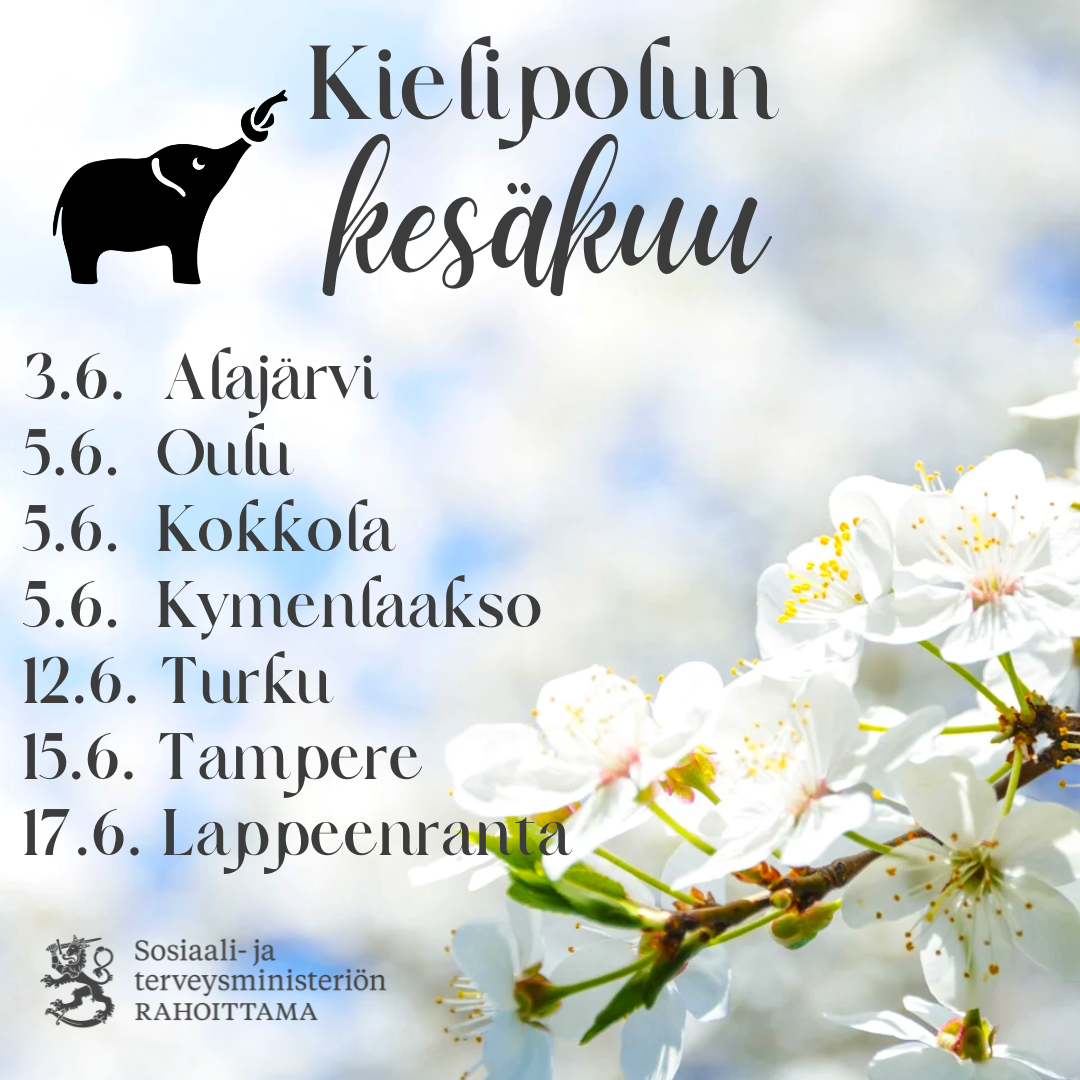 Kielipolulla on oma Kielipolun vertaistuki- WhatsApp-ryhmä, johon voit liittyä. Laita liittymispyyntö p. 050 552 0101. Kielipolulla on myös kaupunkikohtaiset WhatsApp-ryhmät.