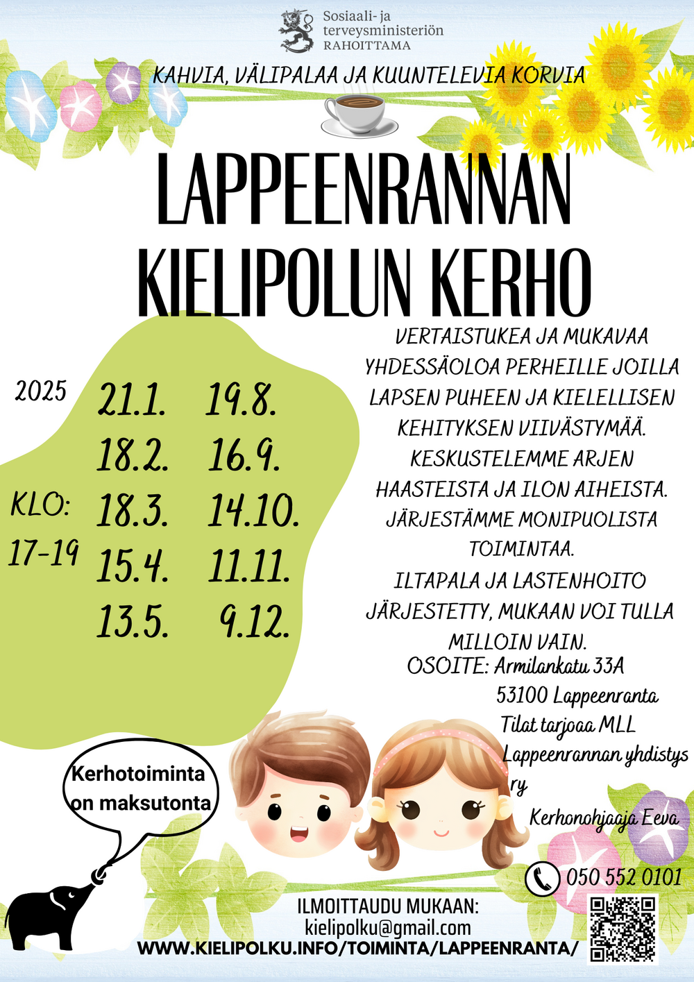 Tule mukaan! Kerhoa ohjaa Kielipolun kiva Eeva.