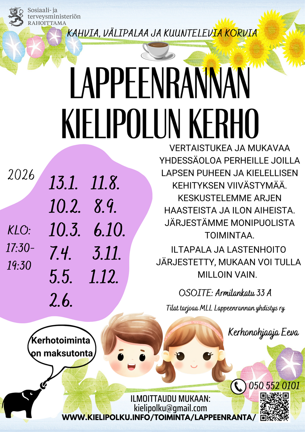 Lappeenrannan kerhossa tuemme perheitä, joissa lapsella on puheen - ja kielenkehityksen ja kommunikoinnin haastetta.