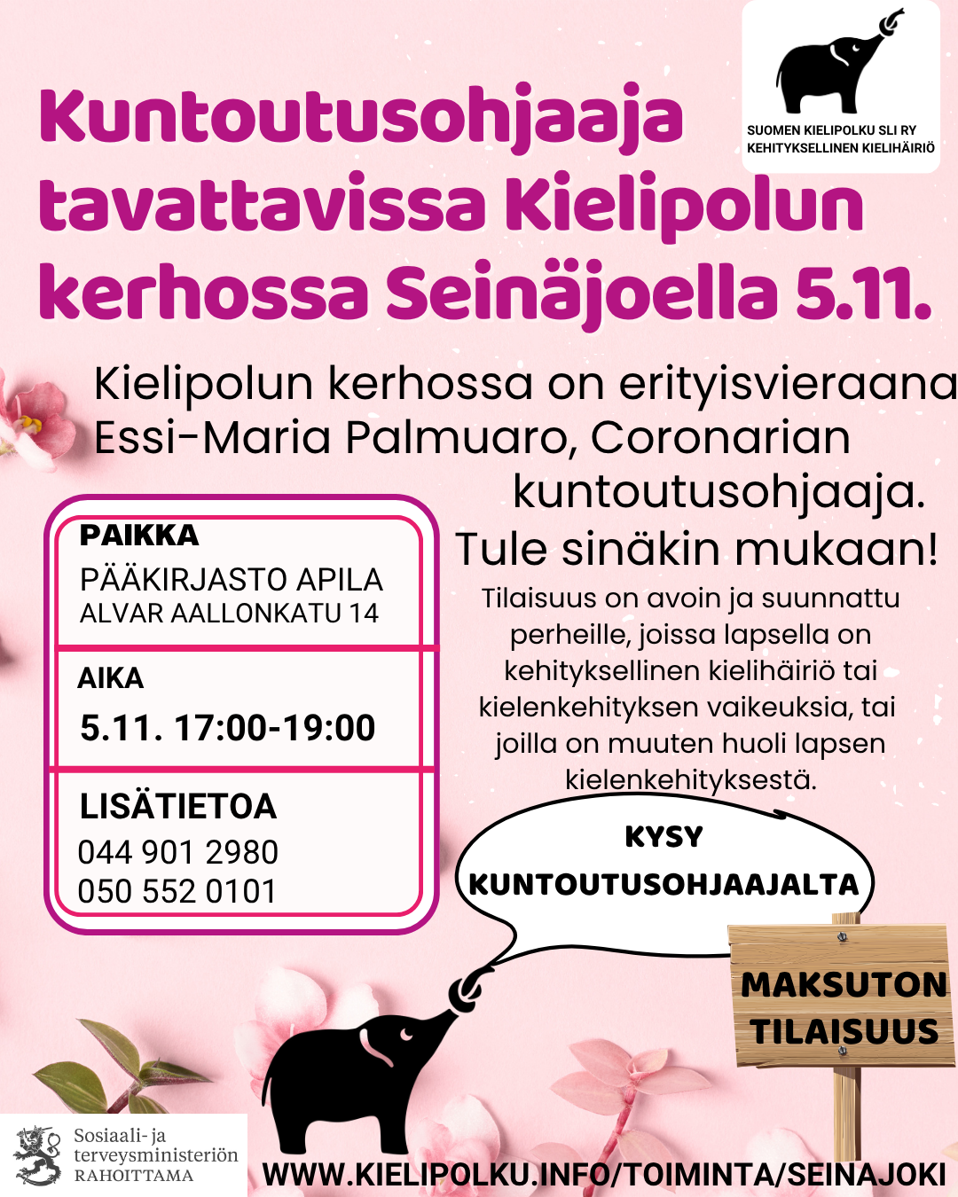 5.11. Kysy kuntoutusohjaajalta, Kuntoutusohjaaja Essi-Maria Palmuaro paikalla.