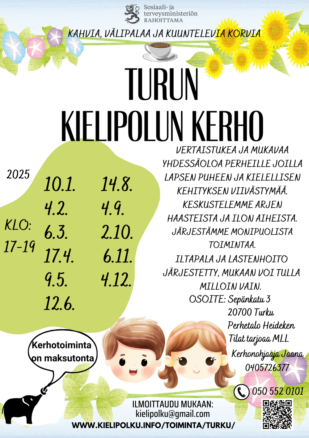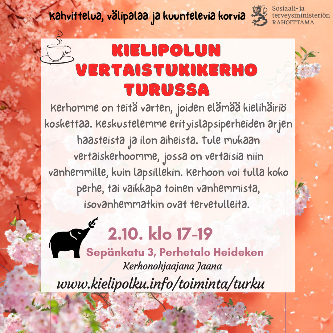 Kerhoon osallistuessaan on tilaisuus jutella toisten vertaisten kanssa, jotka ovat jo läpikäyneet saman elämäntilanteen. Kerhoon osallistuakseen ei tarvitse olla kehityksellinen kielihäiriö -diagnoosia. Koko perhe voi tulla kerhoon, tai sitten vaikka vain toinen vanhemmista.